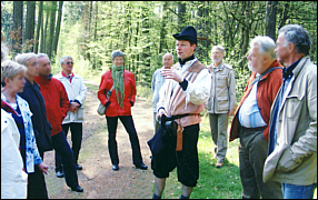 "Wenn Ihre Wandergruppe von einem Bären angegriffen wird, dann müssen Sie nicht schneller sein, als der Bär. Es reicht, wenn Sie schneller sind als der langsamste der übrigen Wanderer." Mit derartigen Praxistipps führt der Waldläufer Ihre Gruppe durch verschlungene Pfade. Er kennt Kräuter und Bäume, berichtet von uralten Schauer-Legenden und zeigt das Leben der mittelalterlichen Bienenwarte, Köhler und Weihrauchsammler.